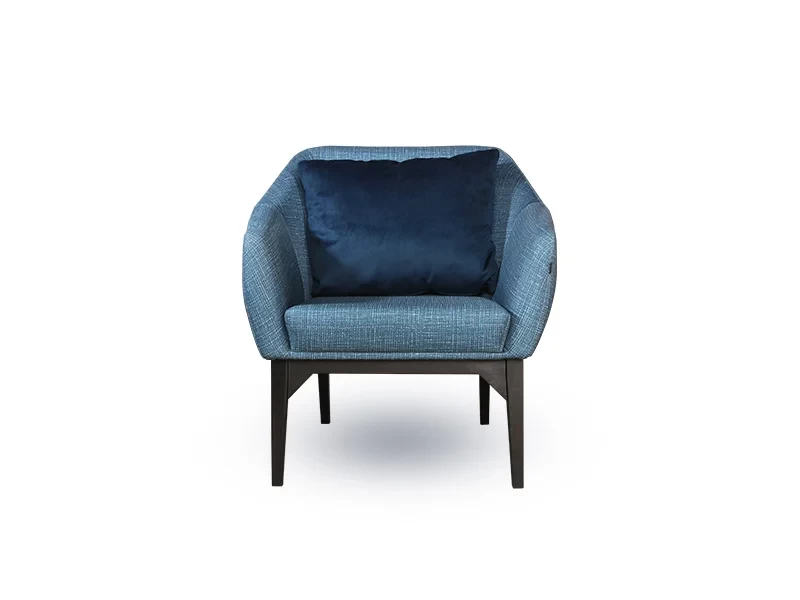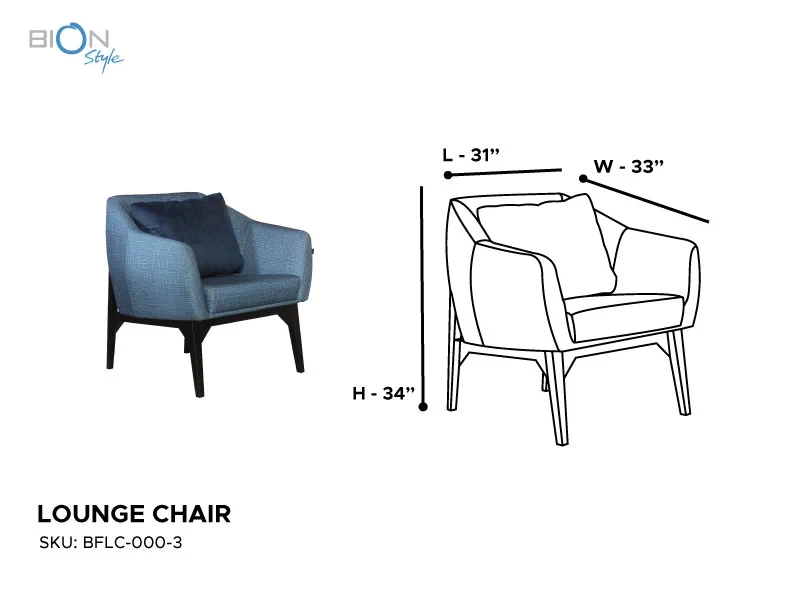 • Lounge chair upholstered in imported fabric featuring wooden legs with laquer finish;